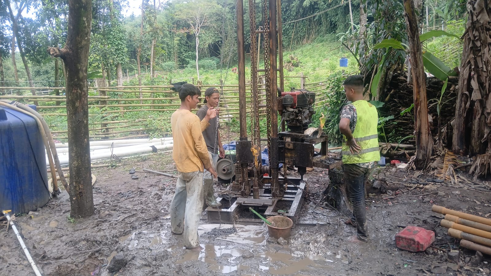 Koordinasi intensif dan evaluasi teknis terus dilakukan guna memastikan sumur bor dapat menghasilkan sumber air yang layak dan berkelanjutan.
